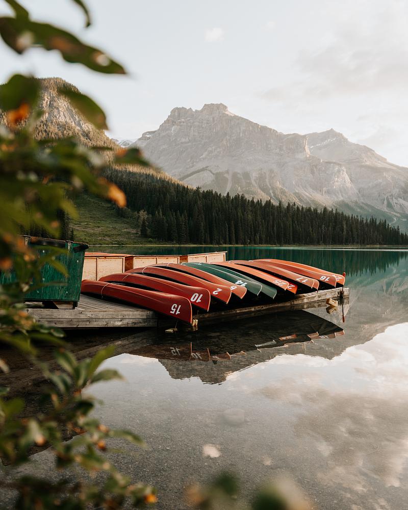 Canoes On Emerald Lake
